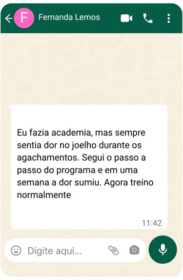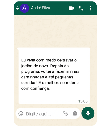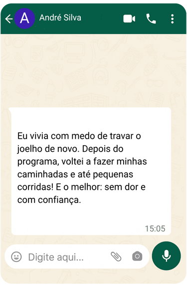 Acesso direto via WhatsApp a um fisioterapeuta especialista em joelhos. Tire dúvidas, receba orientações e garanta o máximo resultado no seu tratamento.